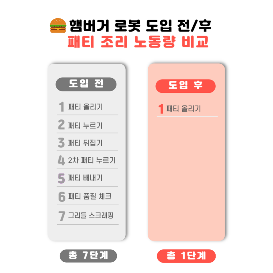 ① 7단계 →1단계, 패티 조리 노동량 감소