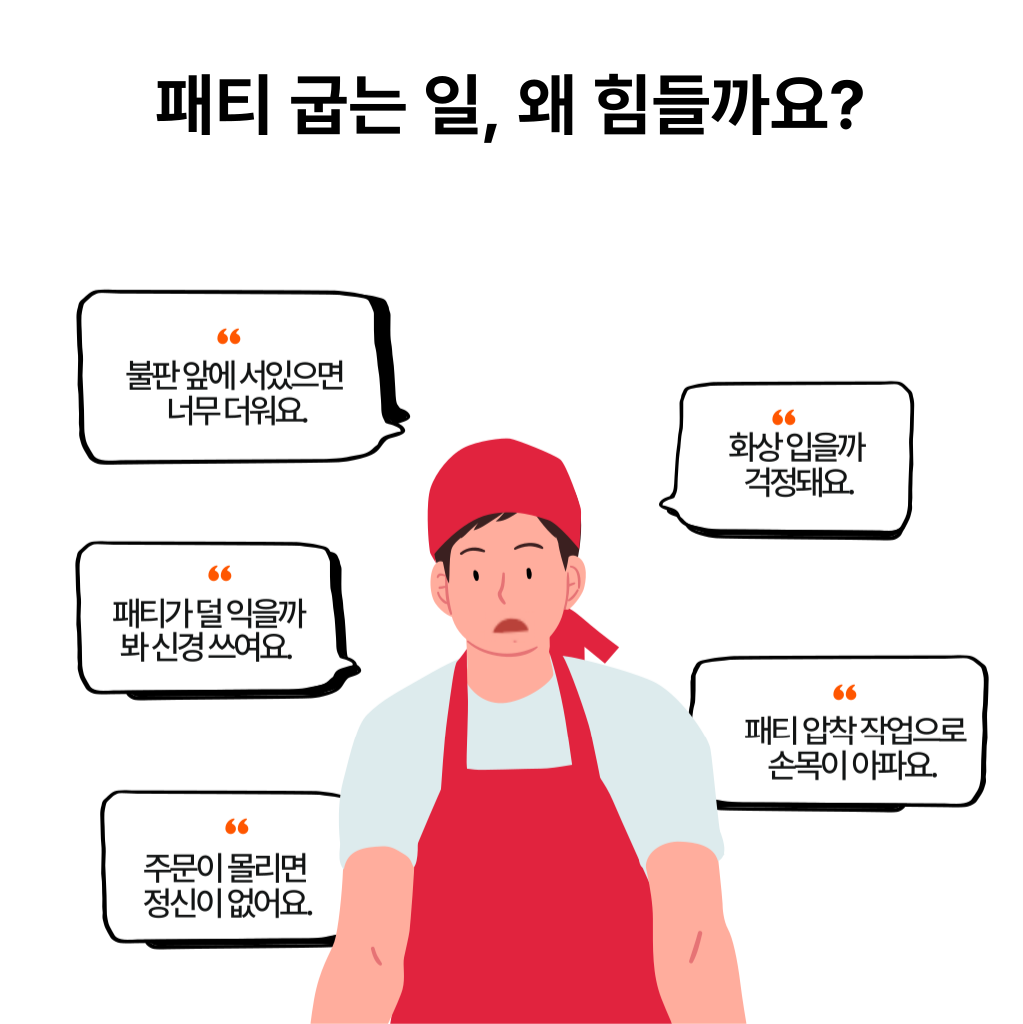 패티 굽는 작업, 힘들고, 오래 걸리시죠?