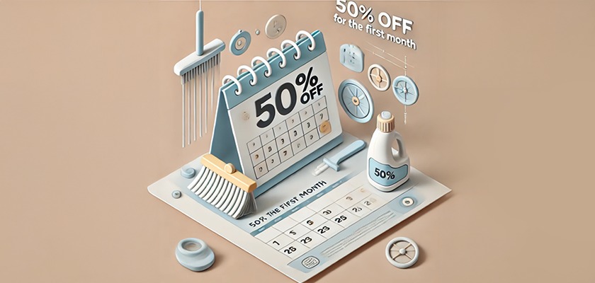 정기청소를 맡겨 주시는 첫 1개월은 50% 할인된 금액으로 청소를 맡겨보실 수 있어요.