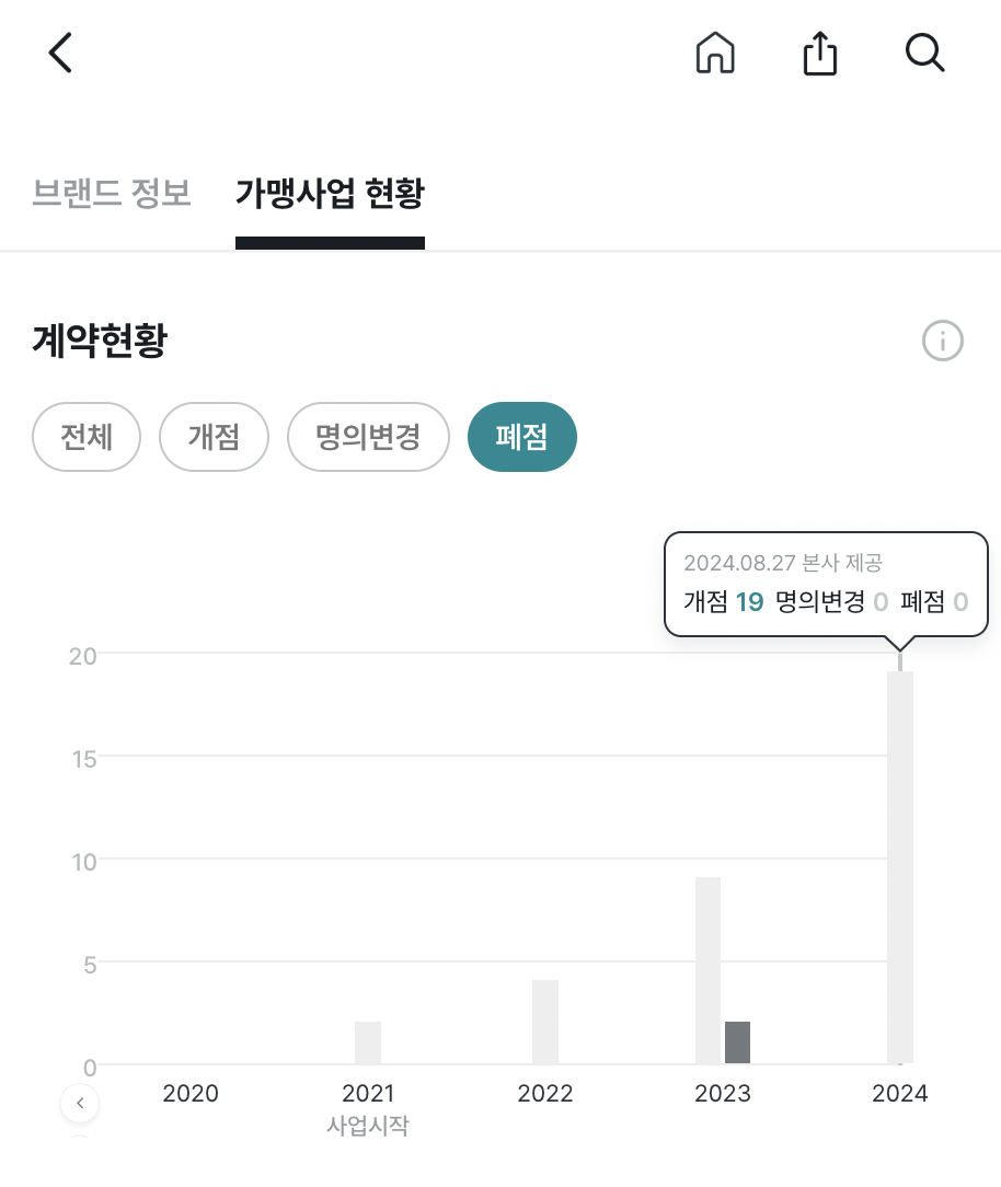 신규 가맹점이 계속 늘어나는 것도 중요하지만, 폐점이 많으면 성장하는 브랜드라고 보기 힘들어요. 그래서 폐점률도 반드시 함께 확인해야 합니다. ‘폐점률’이라는 항목이 정보공개서에 따로 있는 숫자는 아닌데요.