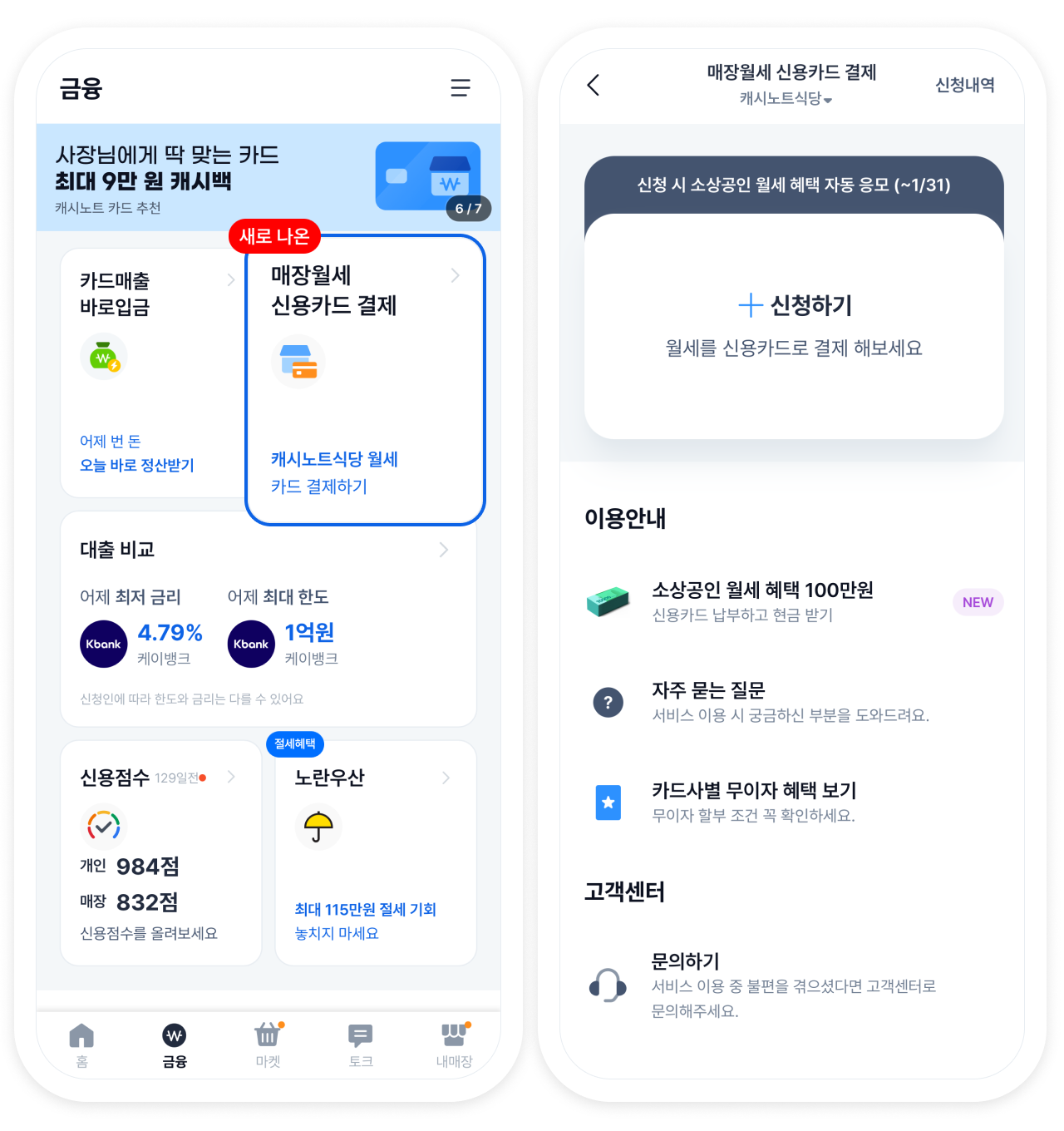 매장 월세를 납부해야 하는데, 이번 달은 현금이 부족해서 고민이라면? 신용카드로 결제해 보세요.
