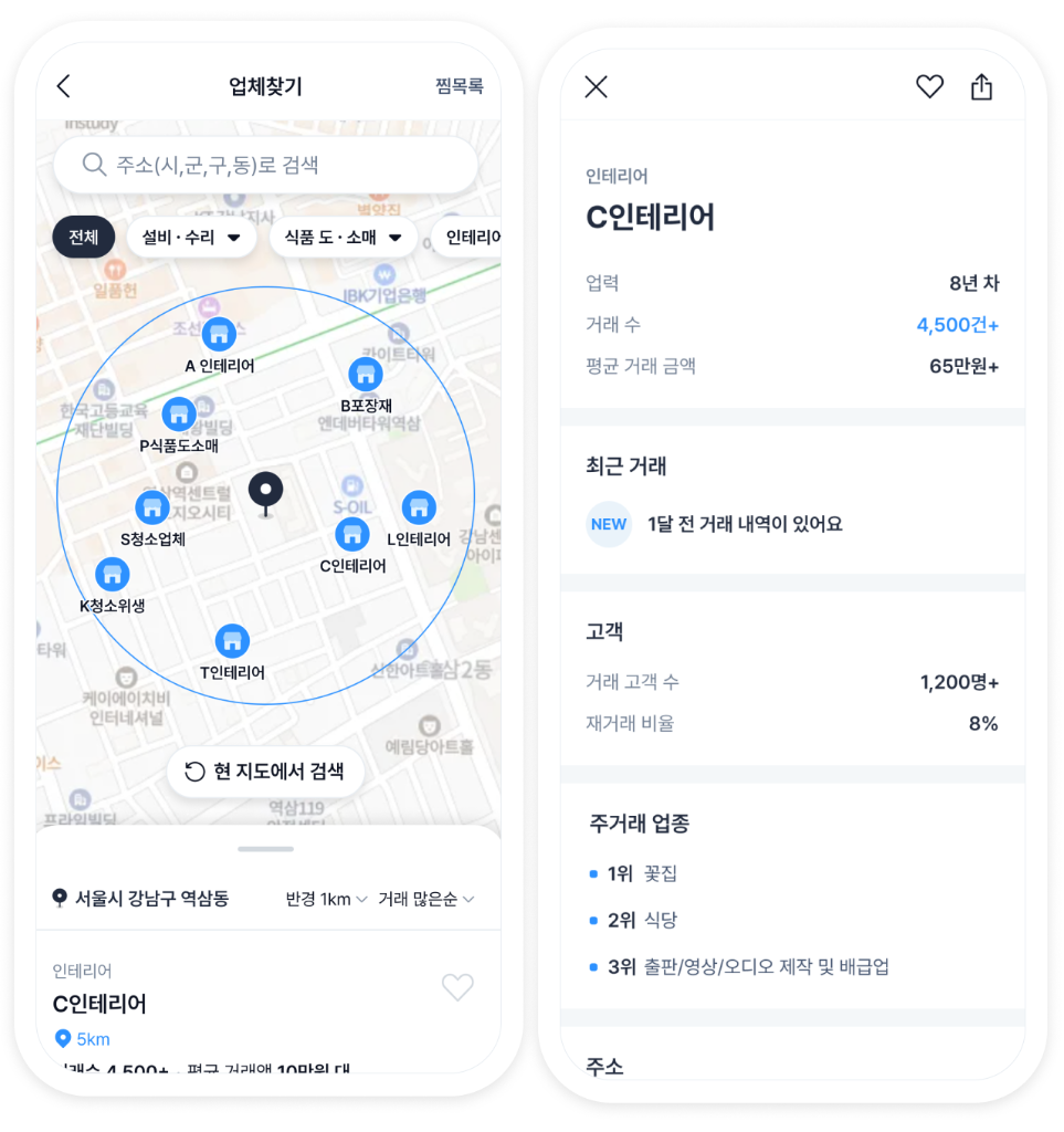 1️⃣ | 장사에 꼭 필요한 업체를 쉽게 찾아볼 수 있어요 |