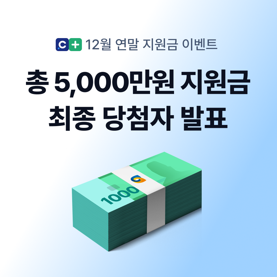 본 공지는 24.11.29~25.01.02 캐시노트플러스 멤버십 고객을 대상으로 진행한 12월 연말 지원금 이벤트에 선정된 당첨자 발표입니다.