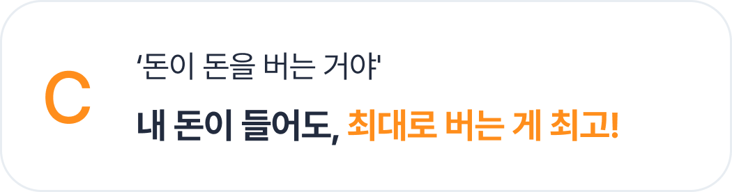 돈이 돈을 부른다는 생각이 있어요.