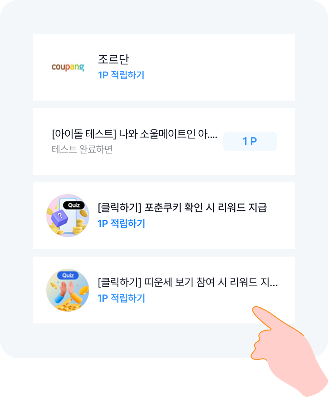 매일 30 ~ 50P 이상 빠르게 모아요.