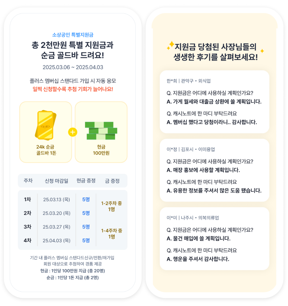 사장님을 위한 24K 순금 이벤트도 있으니 꼭 확인해 보세요!