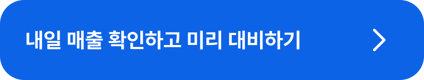 사장님, 앞으로 오늘∙내일 예상 매출을 매일 확인하실 수 있어요. 매출이 감소할지, 증가할지 미리 예측해 보세요.