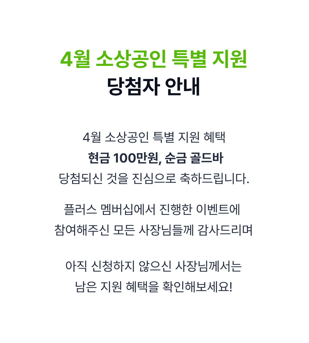 [당첨 발표] 4월 소상공인 특별 지원 당첨자 발표