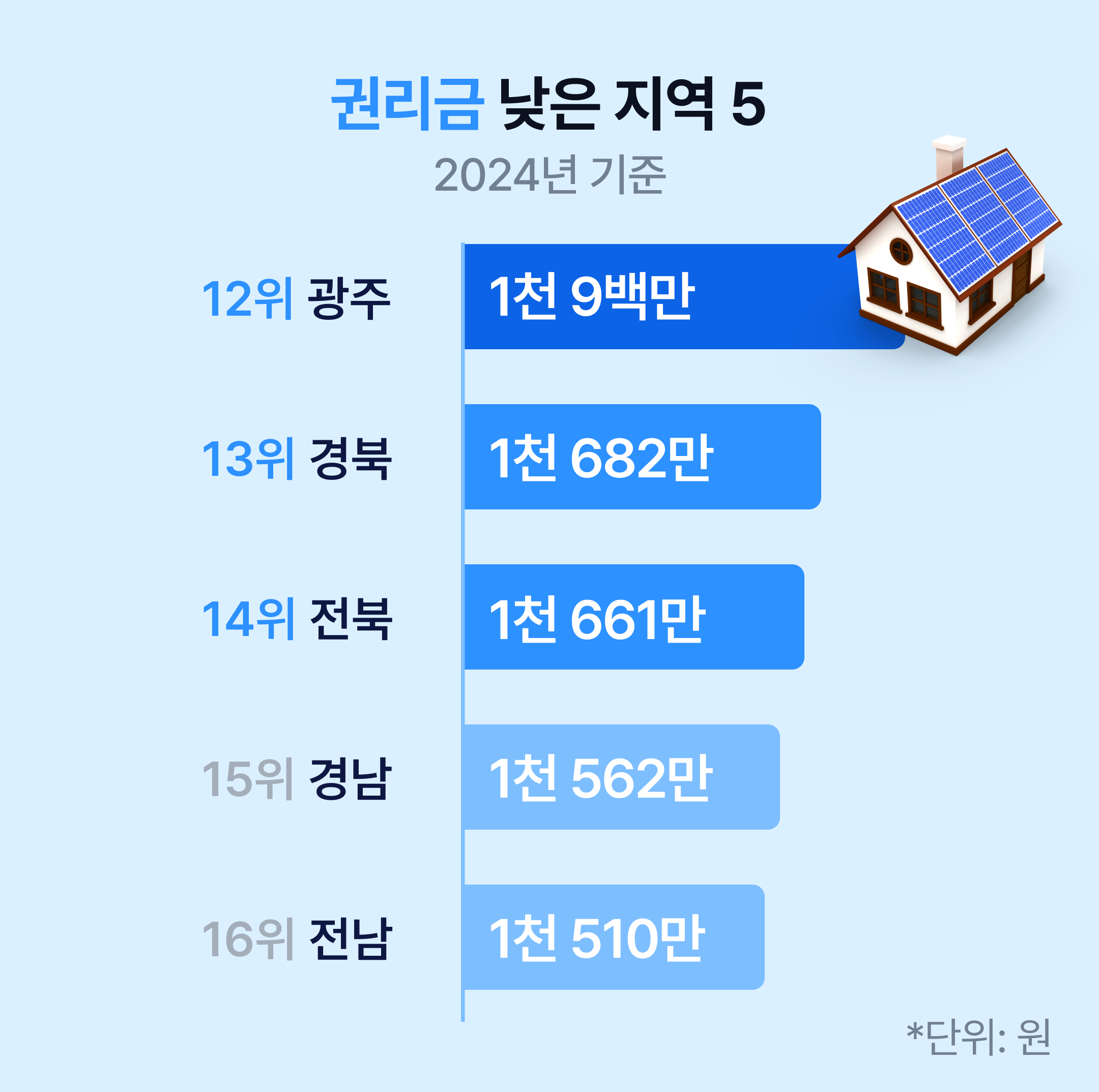 전남, 경남, 전북, 광주 지역 권리금 낮아요