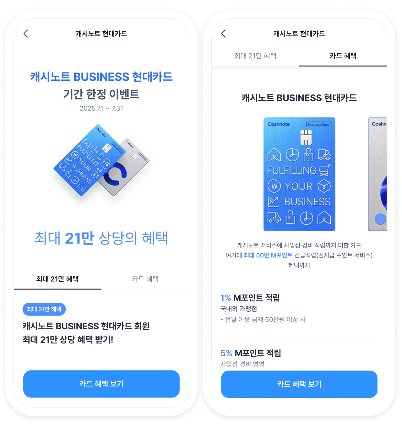 캐시노트에서 현대카드와 함께 사장님을 위한 캐시노트 BUSINESS 현대카드를 출시했어요.