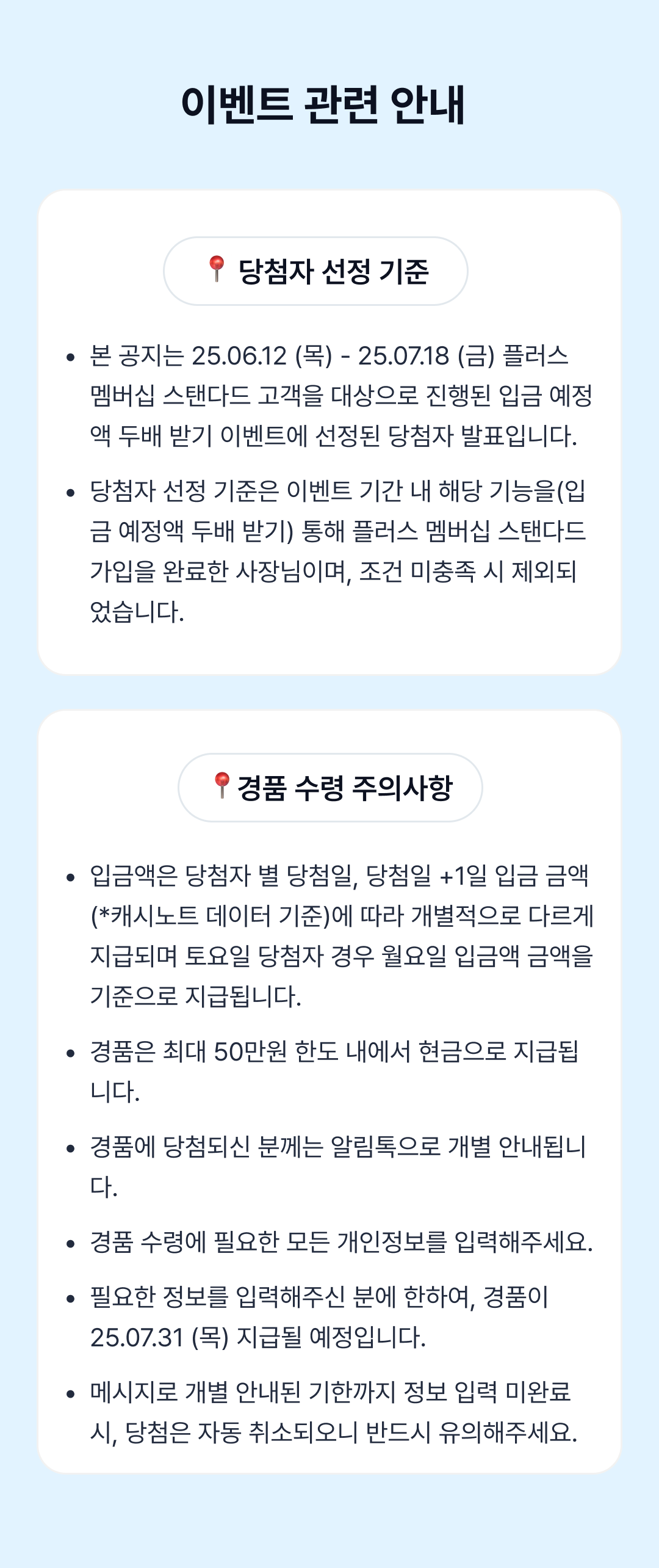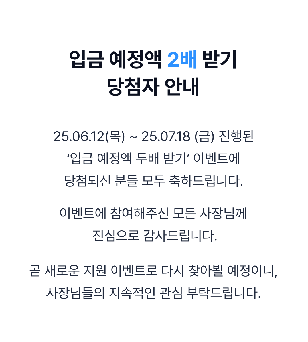 [당첨 발표] 입금 예정액 2배 받기 이벤트 당첨자