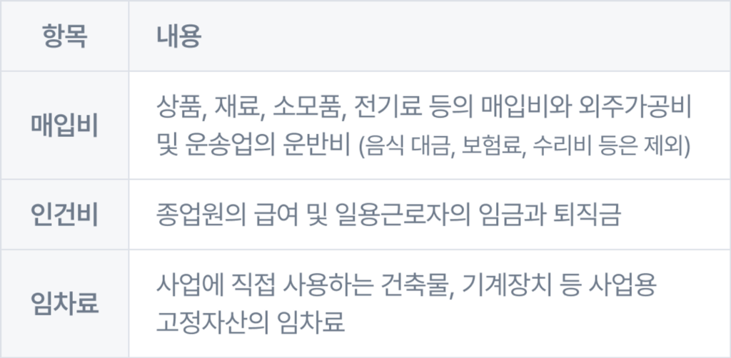 종합소득세에서 경비로 인정되는 주요 항목은 아래와 같이 크게 3가지로 나눌 수 있습니다.