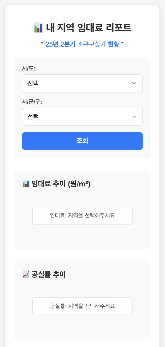 📊 무료로 제공해 드려요 ① 내 지역 임대료 추이 ② 연면적당 임대료 현황 ③ 내 지역 공실 현황 | |