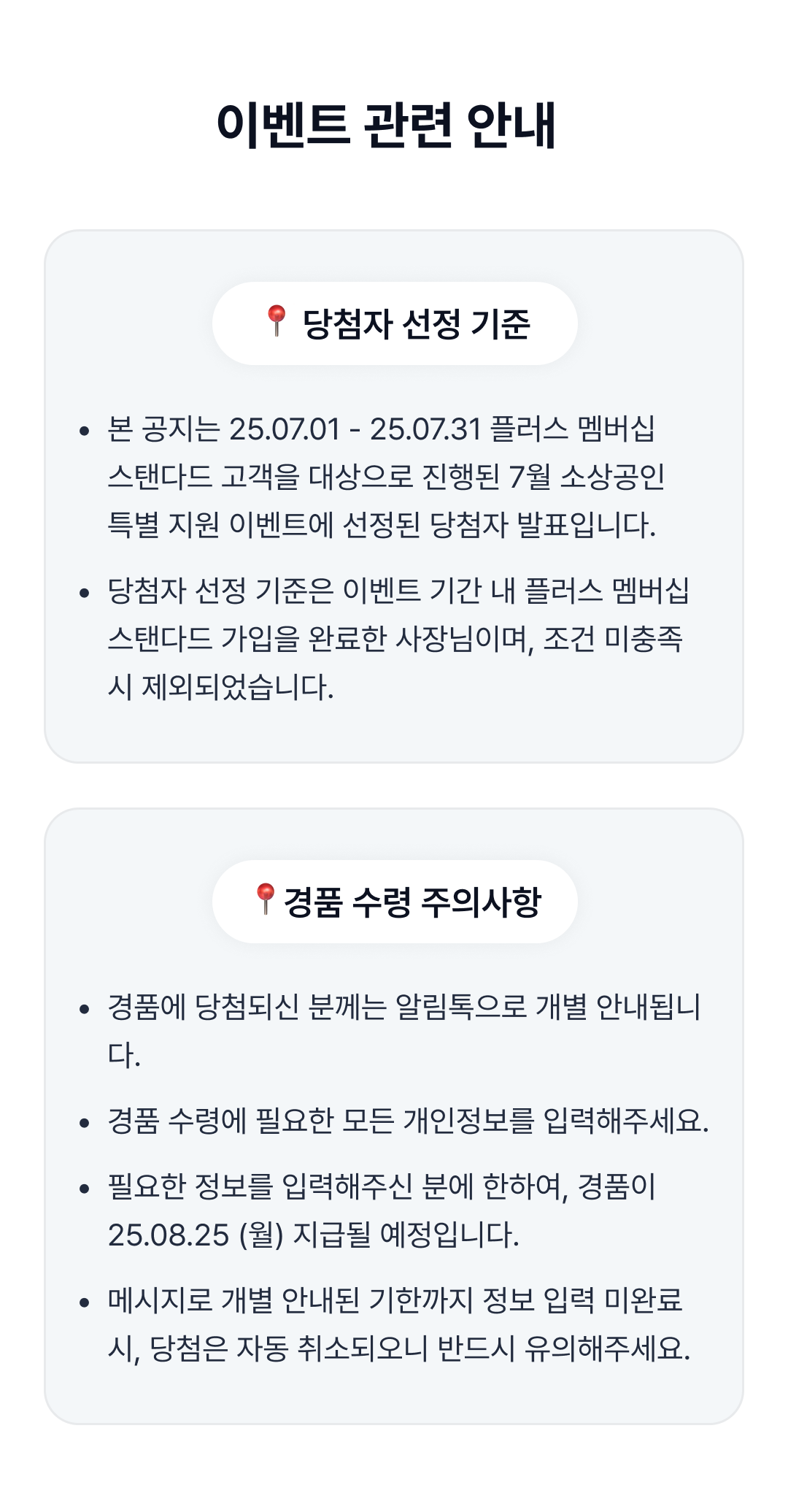 [당첨 발표] 7월 소상공인 특별 지원 당첨자 발표