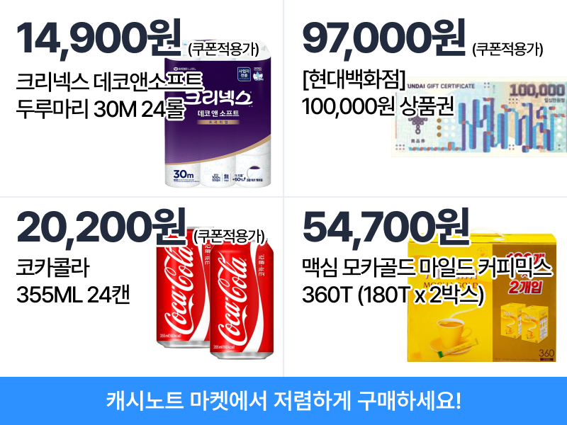 ✅ 캐시노트 마켓 쿠폰은 [캐시노트 마켓 탭 - 마이페이지 - 쿠폰]에서 확인 가능합니다.