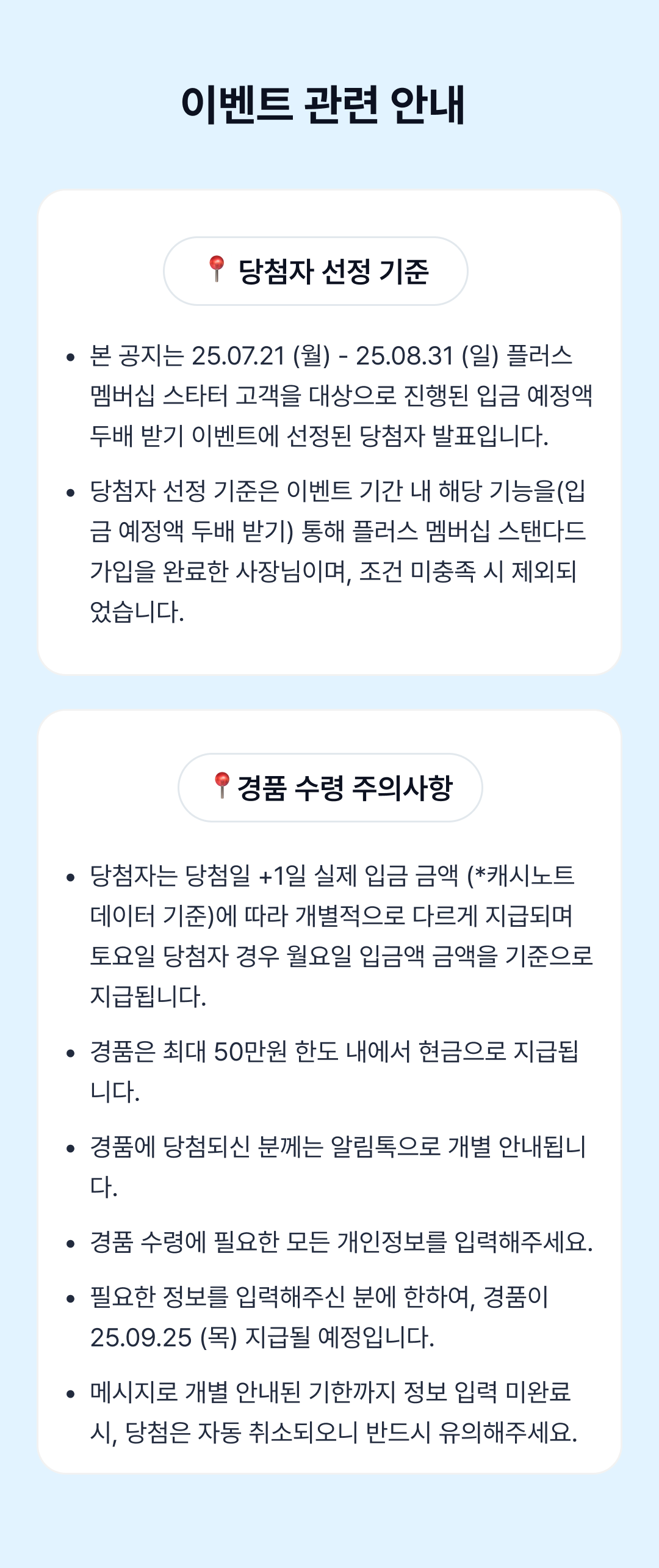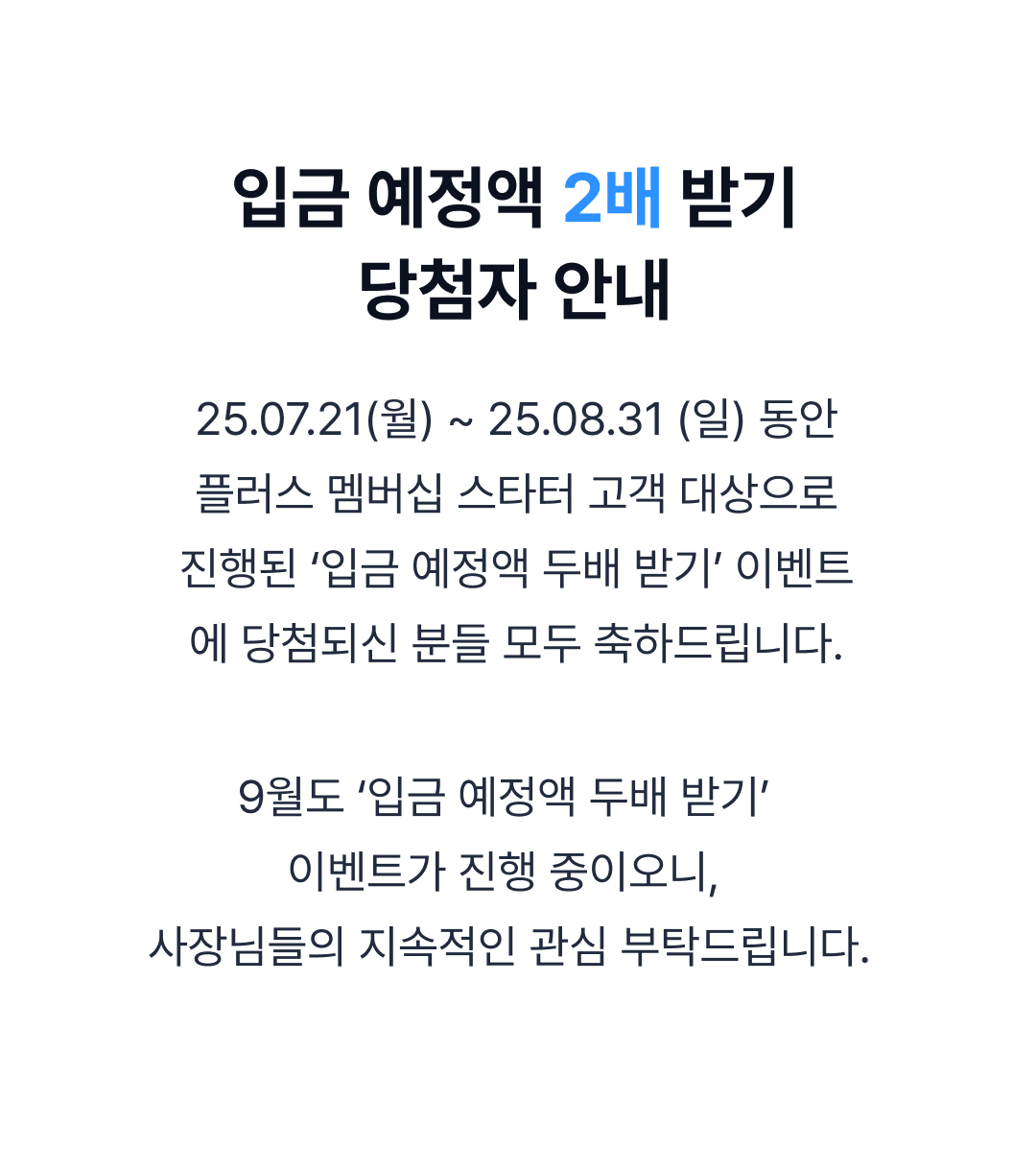 [당첨 발표] 7-8월 스타터 고객 대상 입금 예정액 2배 받기 이벤트