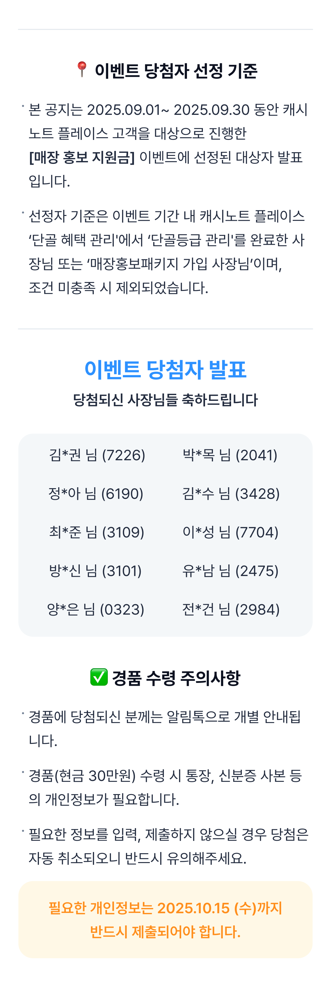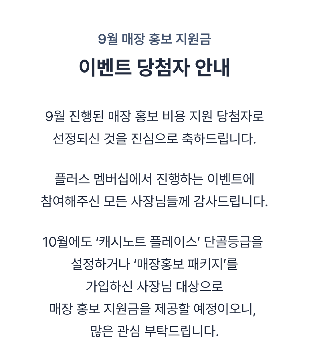 [당첨 발표] 9월 소상공인 매장 홍보 지원금 대상자 발표