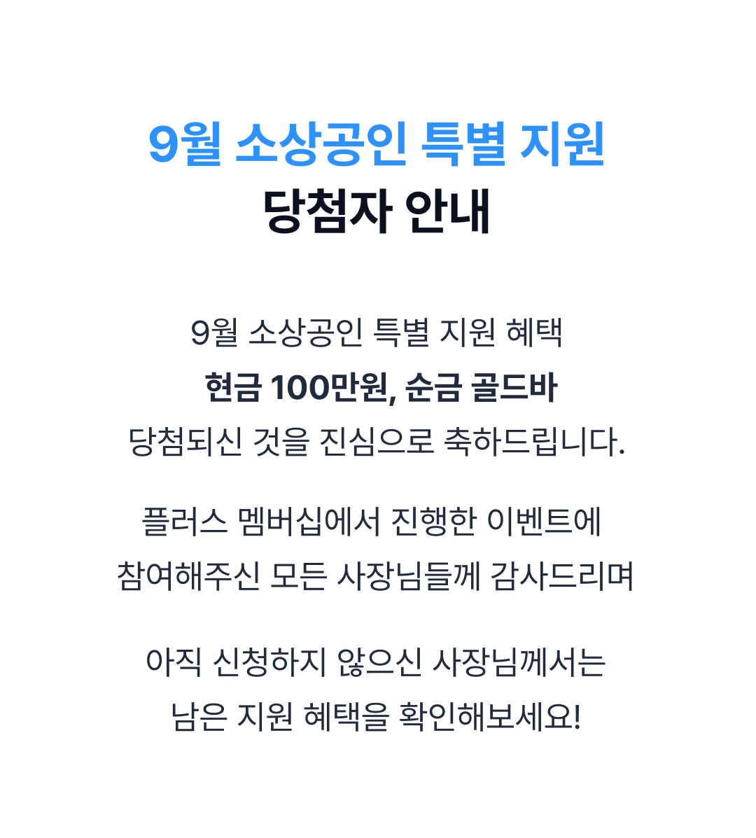 [당첨 발표] 9월 소상공인 특별 지원 당첨자 발표