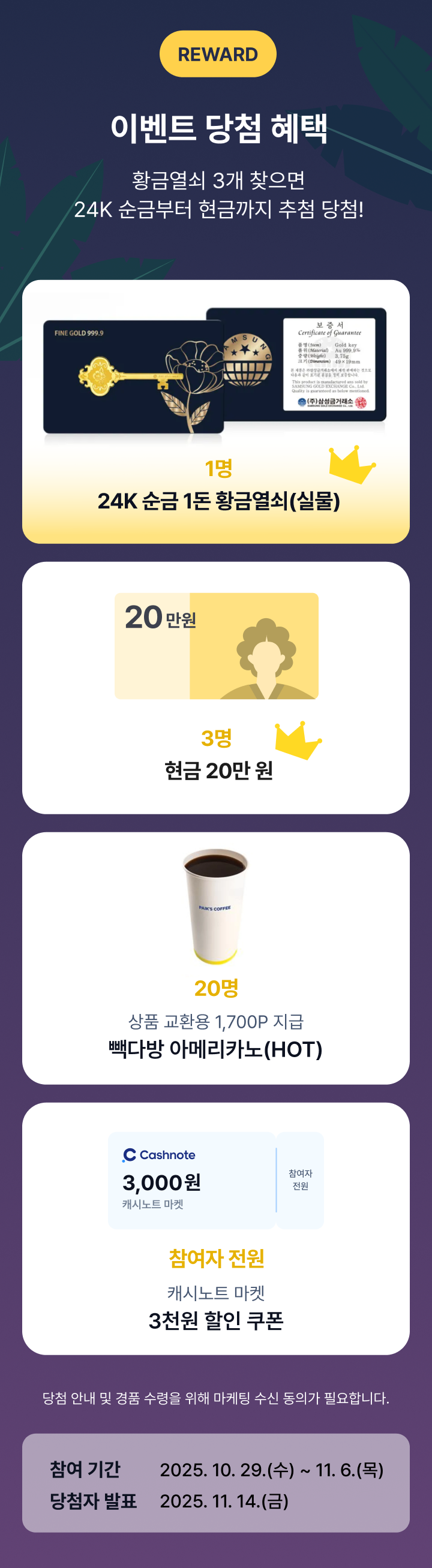 [종료] 24K 순금 한돈! 황금열쇠 찾기