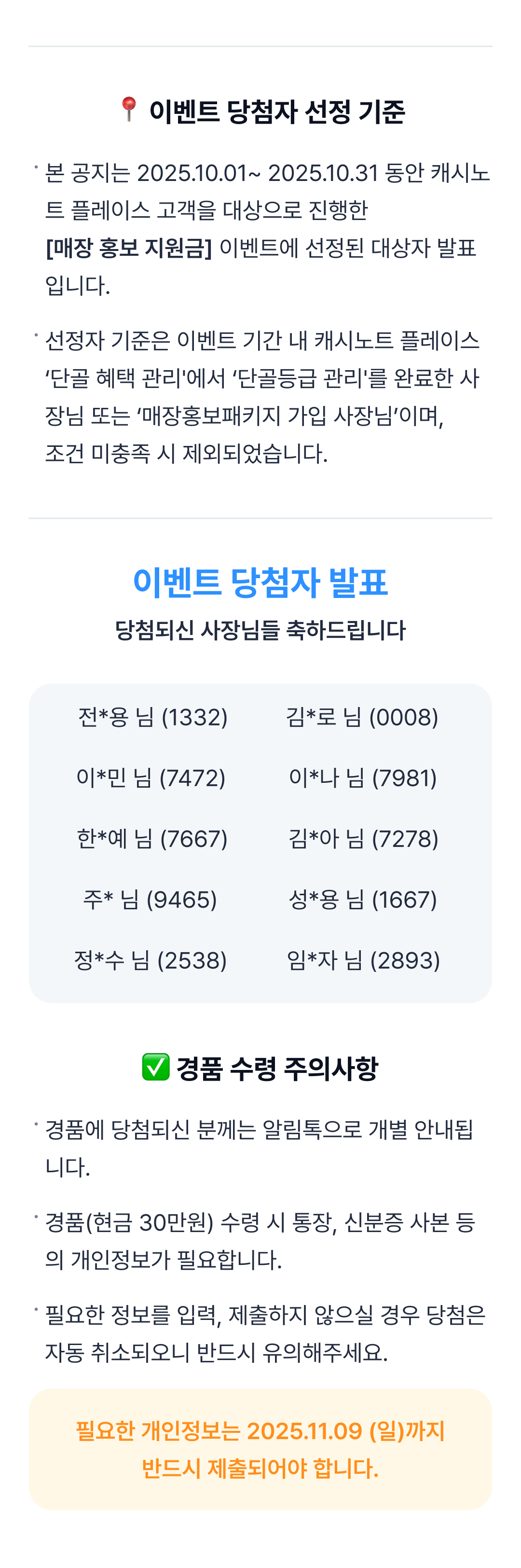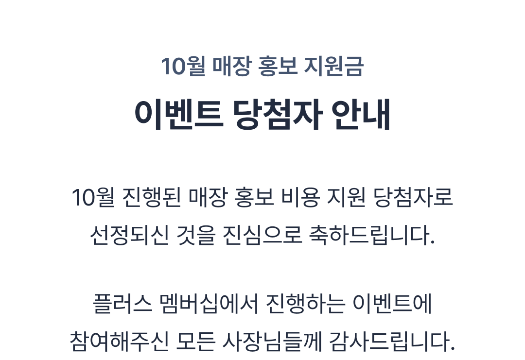 [당첨 발표] 10월 소상공인 매장 홍보 지원금 대상자 발표