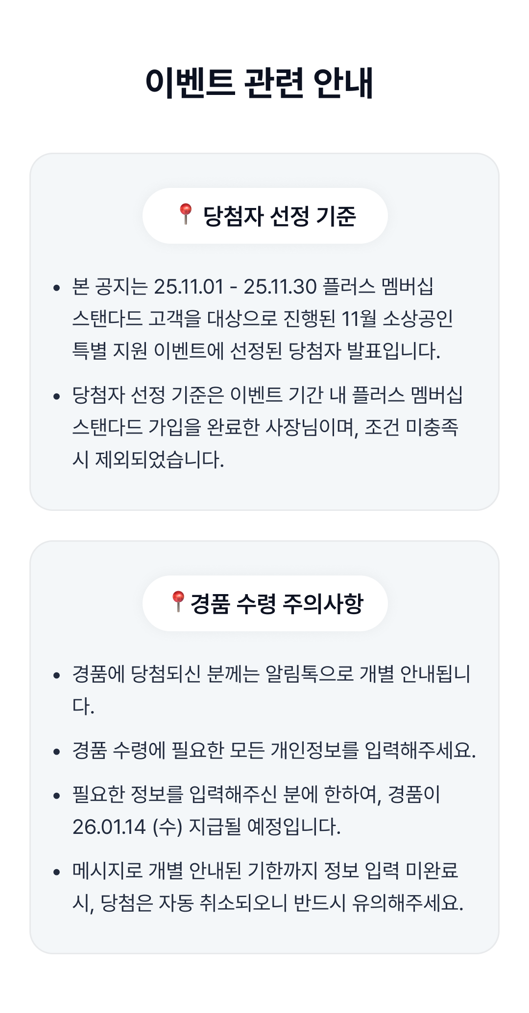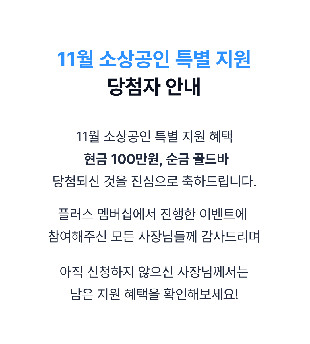 [당첨 발표] 11월 소상공인 특별 지원 당첨자 발표