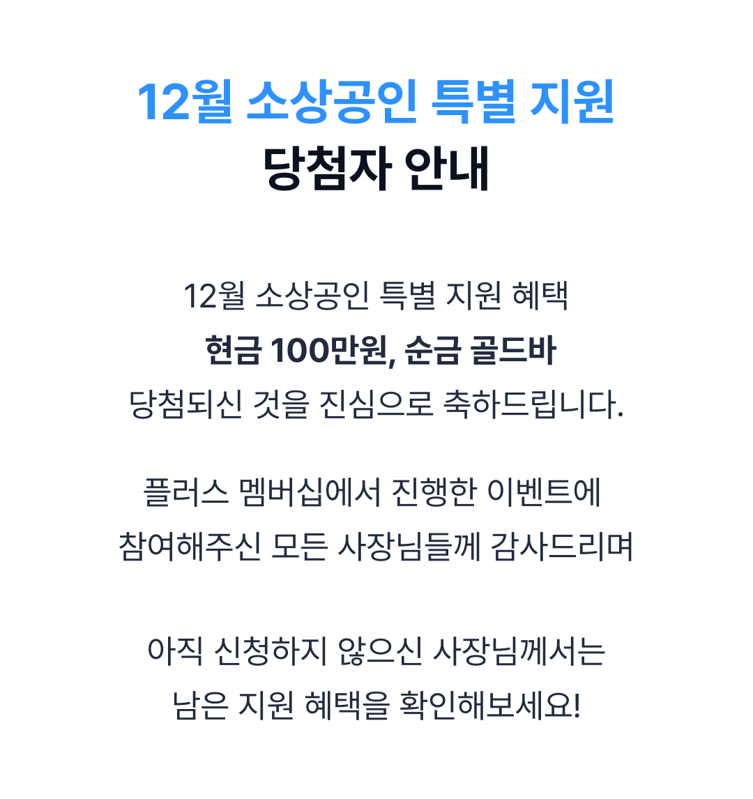 [당첨 발표] 12월 소상공인 특별 지원 당첨자 발표
