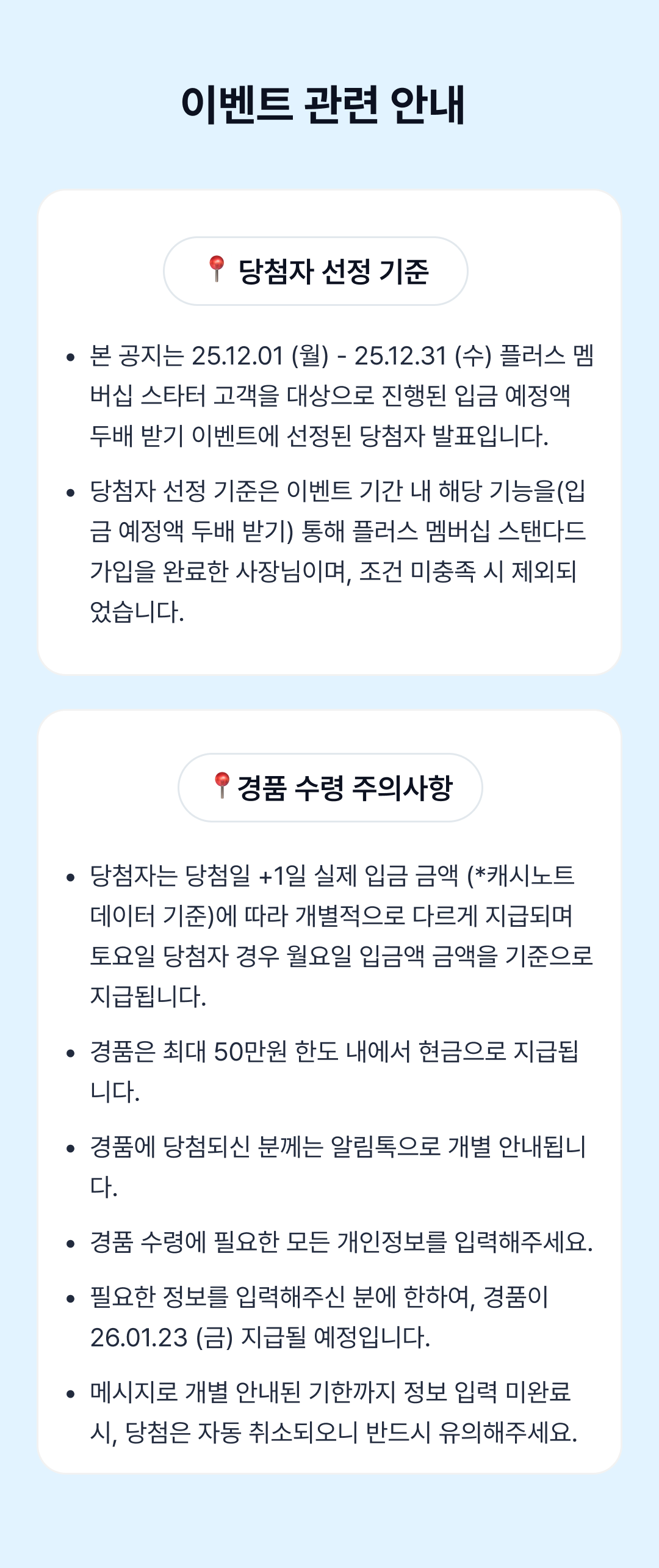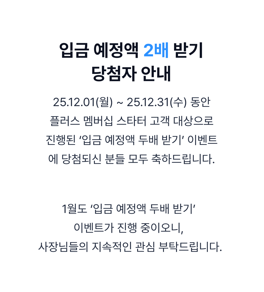 [당첨 발표] 12월 스타터 고객 대상 입금 예정액 2배 받기 이벤트