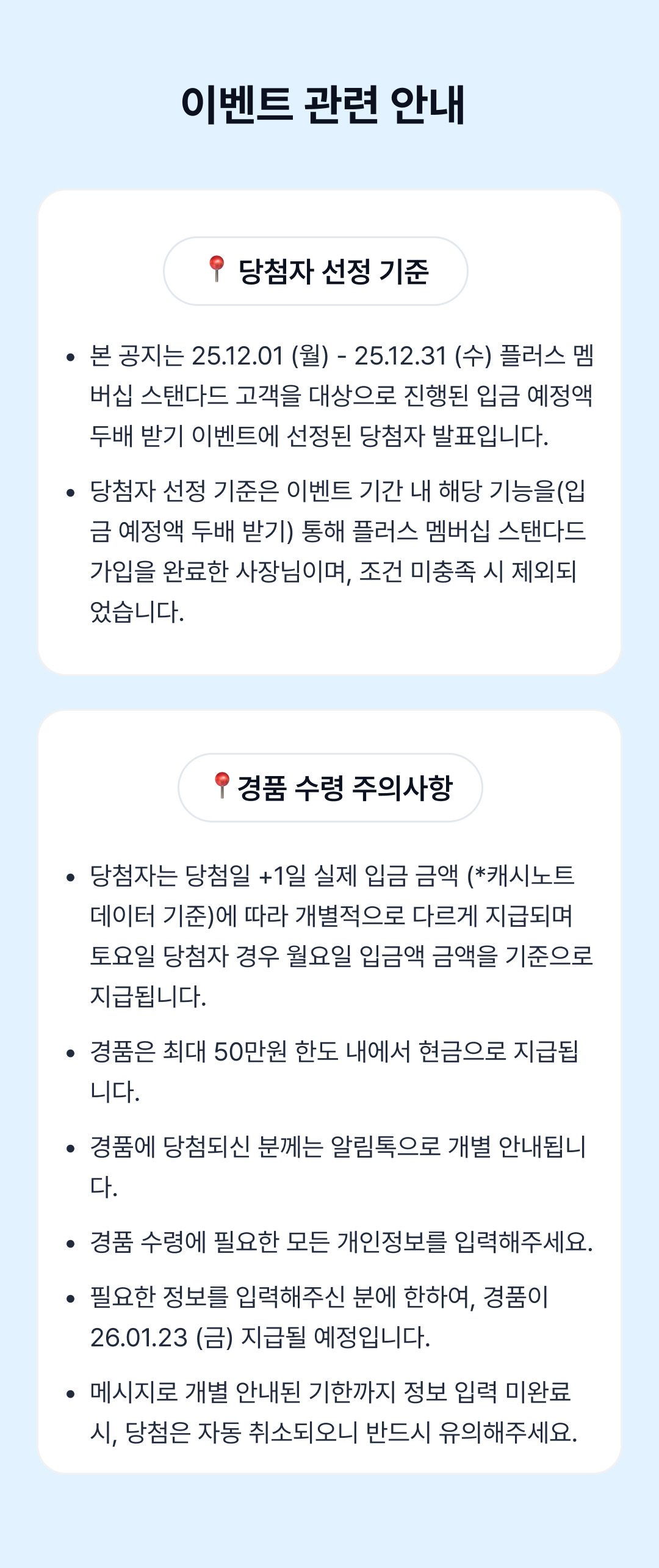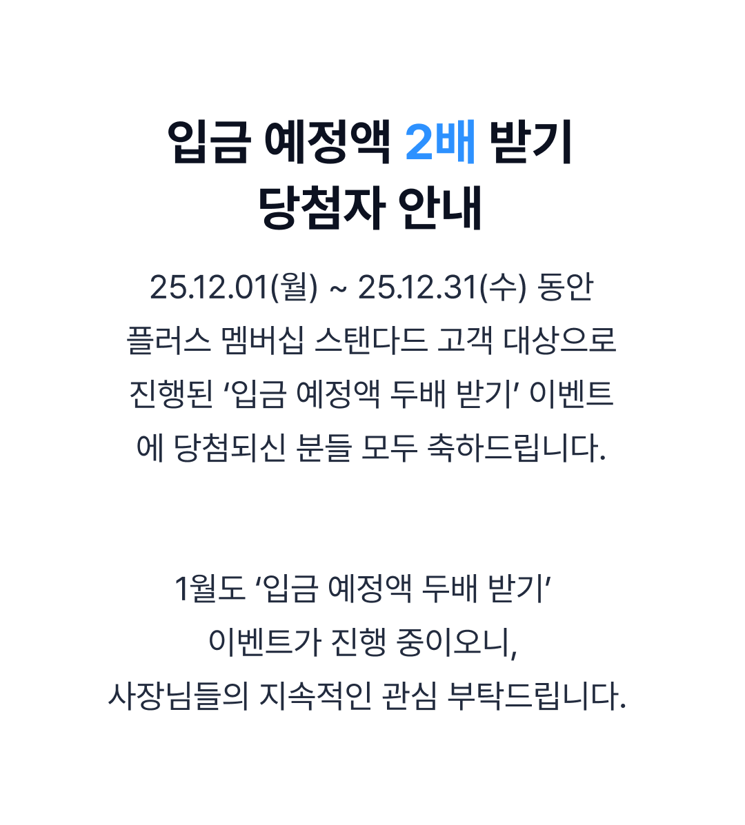[당첨 발표] 12월 스탠다드 고객 대상 입금 예정액 2배 받기 이벤트
