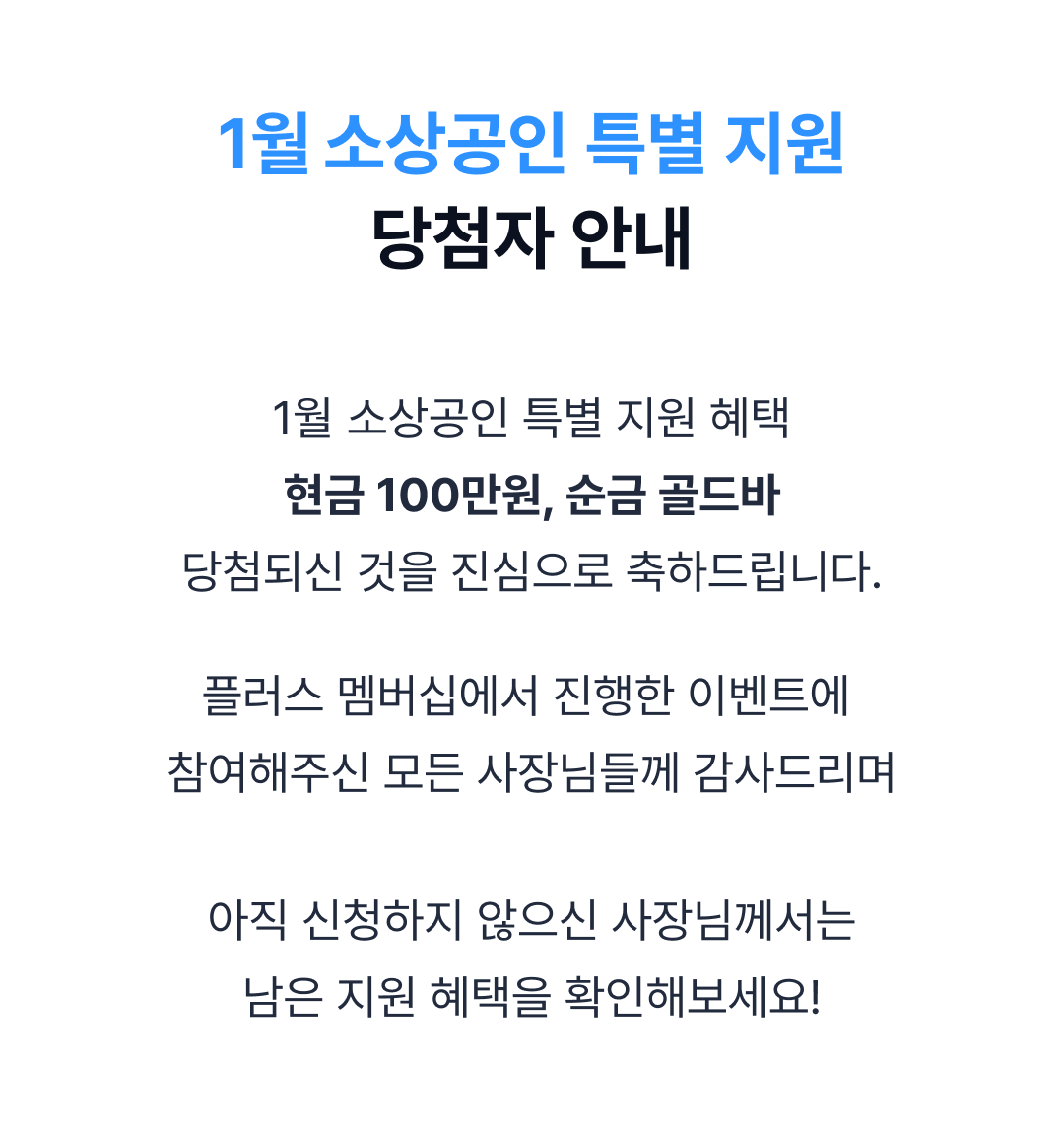 [당첨 발표] 1월 소상공인 특별 지원 당첨자 발표