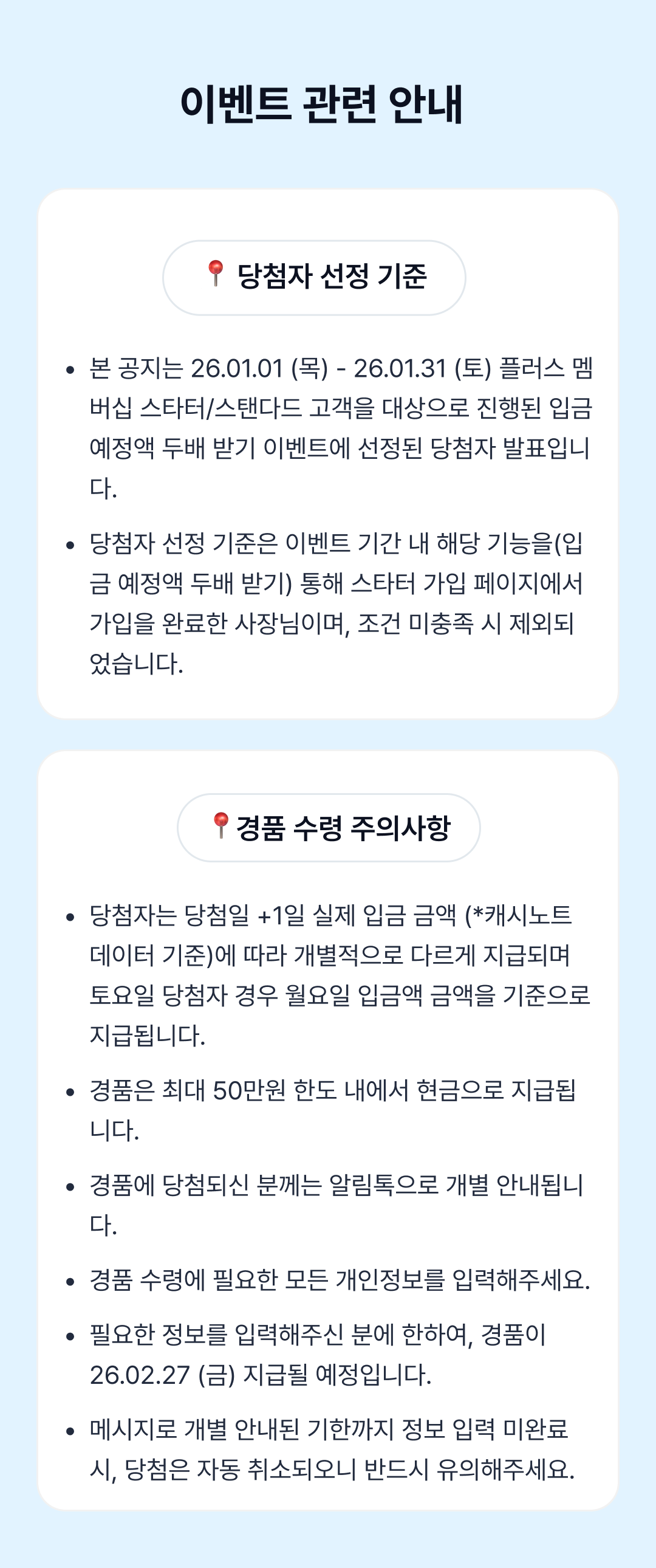 [당첨 발표] 1월 스타터 고객 대상 입금 예정액 2배 받기 이벤트