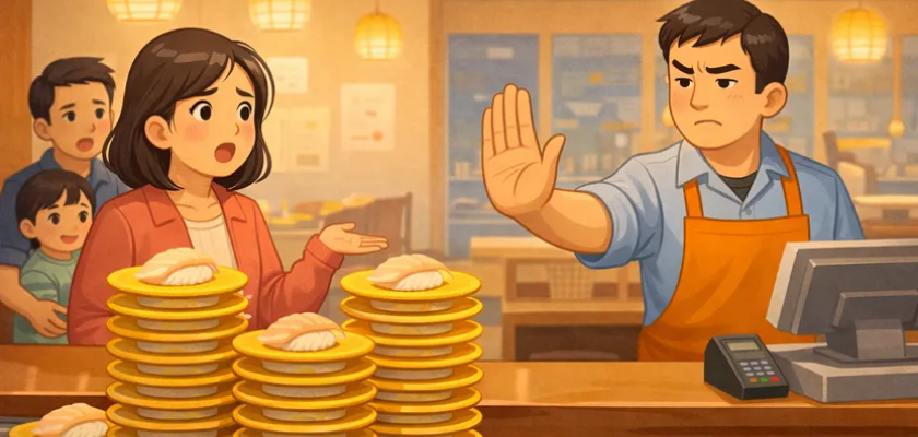 법률 전문가들의 판단은 "아니다"이다. 회전초밥집은 본래 손님이 원하는 접시를 골라 먹는 시스템이다. 만약 특정 메뉴의 원가율이 높아 대량 주문이 부담스러웠다면, 식당 측은 "1인당 광어 주문 n접시 제한" 같은 규칙을 사전에 벽에 붙이거나 메뉴판에 고지했어야 했다.