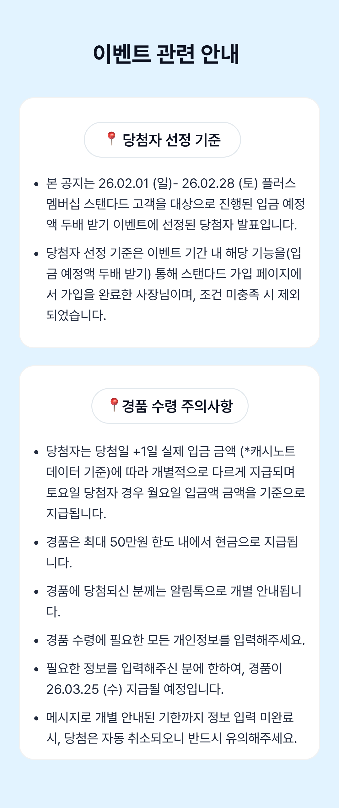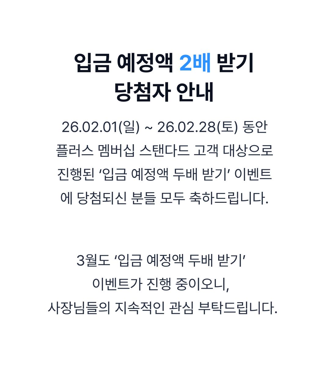 [당첨 발표] 2월 스탠다드 고객 대상 입금 예정액 2배 받기 이벤트