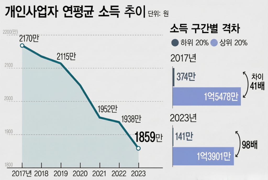 그런데 상위 20% 자영업자들은 한 달에 약 1,000만 원을 벌고 있습니다.