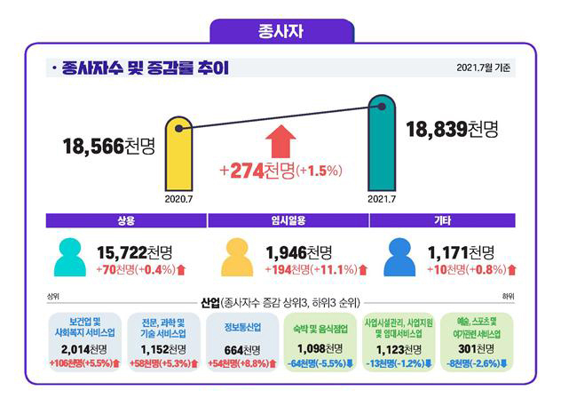 '코로나 4차 확산' 7월 사업체 종사자 증가 '20만명대'로 꺾여