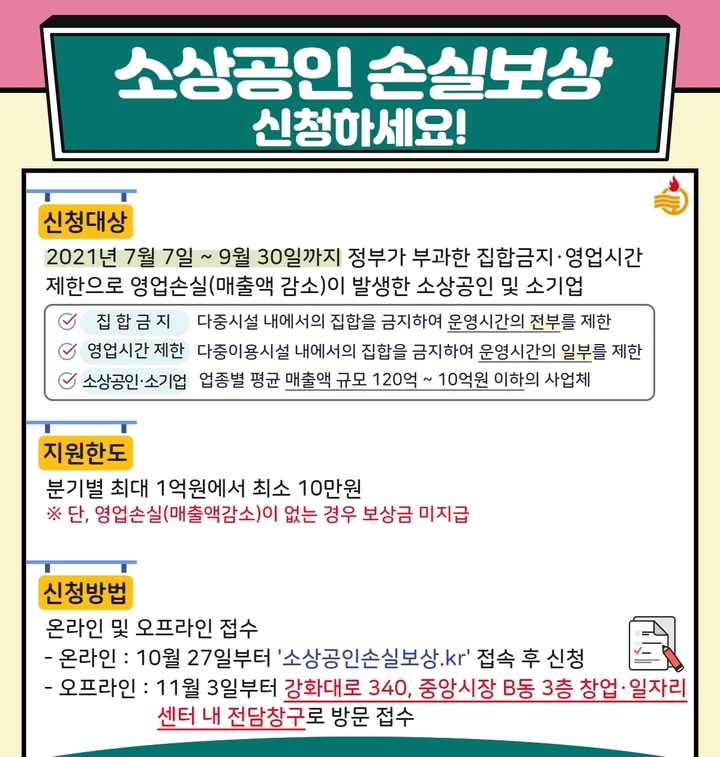 강화군, 코로나19 피해 소상공인 손실보상…최대 1억원 지원