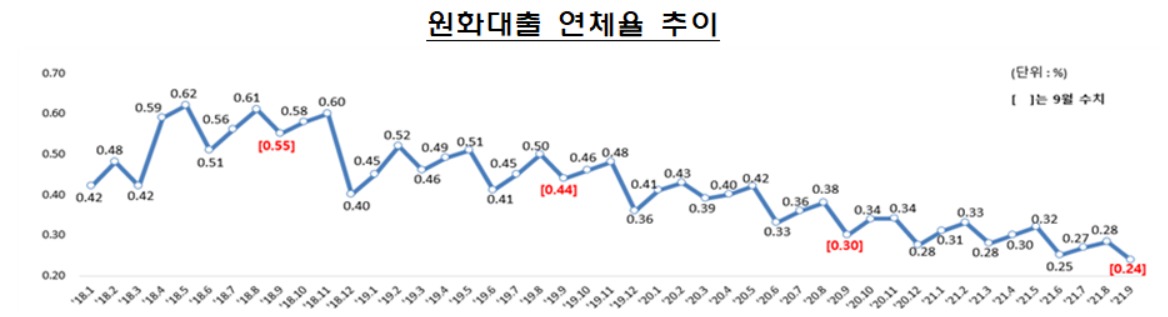 9월말 은행 연체율 0.24% '역대 최저'…코로나19 만기연장 착시 지적도