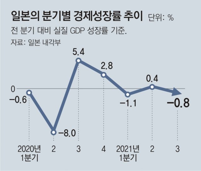 日 3분기 성장률 ―0.8%… 코로나 확산에 마이너스 ‘유턴’