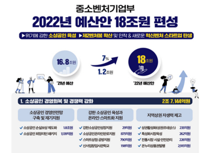 중기부 사상최대 18조원 편성...소상공인 지원, 벤처육성 중점 [2022예산안]
