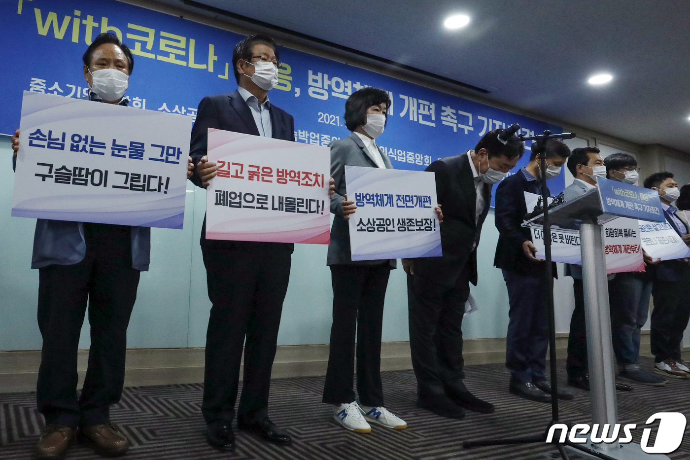 소상공인들 'with 코로나 대응, 방역체계 개편 촉구 기자회견'