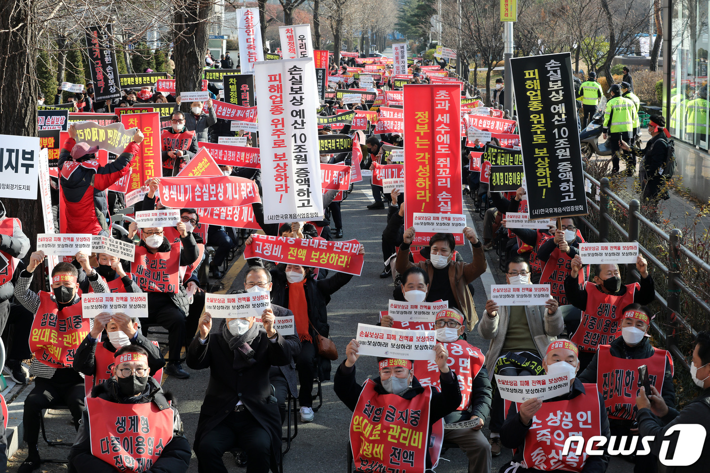 "피해 실질보상·소급적용해야"…자영업자들, 국회 앞 규탄대회