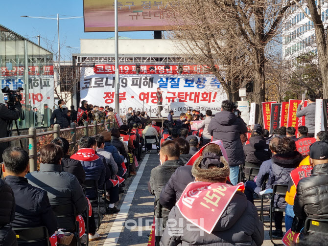 "쥐꼬리 손실보상 10만원"…거리로 나온 '코로나 피해' 자영업자들