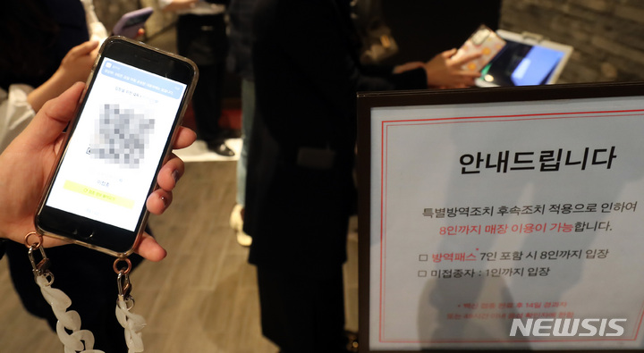 방역패스 인증하는 음식점 손님들