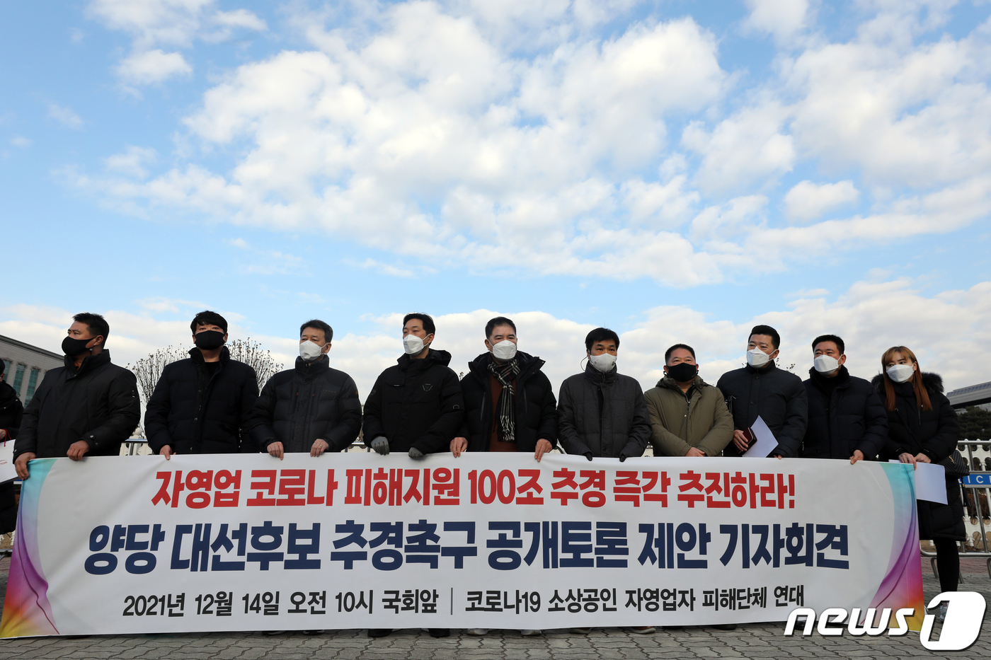 코로나 피해지원 촉구하는 자영업자