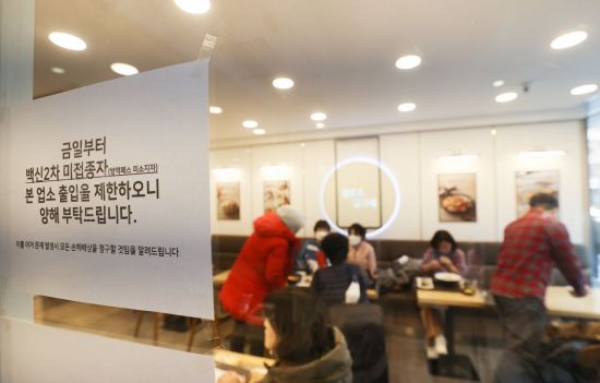 당국 "미접종자 입장 거부 음식점, 현행법 상 처벌할 수 없어"
