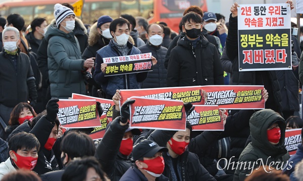 자영업자들 "정부, 약속 저버렸다"...이성만·원희룡 등장에 야유