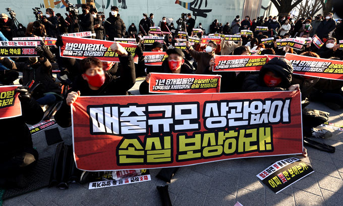 “2년간 코로나 사태의 희생양”… 거리로 나선 ‘벼랑끝’ 자영업자들