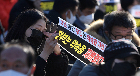 “2년간 일방적 희생양”… 폐업위기 자영업자 거리로 나왔다