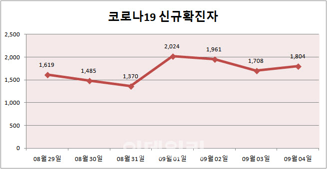 코로나19 신규확진자 1804명…60일째 네 자릿수(종합)