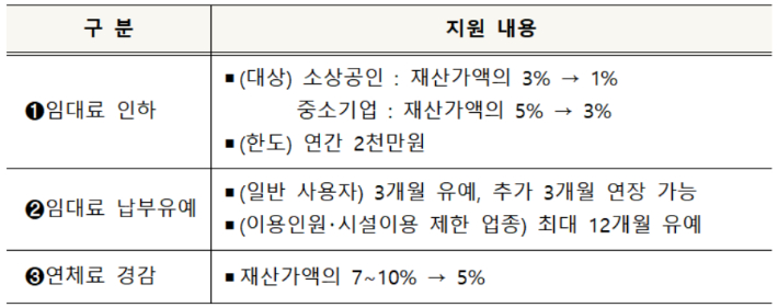 소상공인 국유재산 임대료 인하 조치 6개월 더 연장