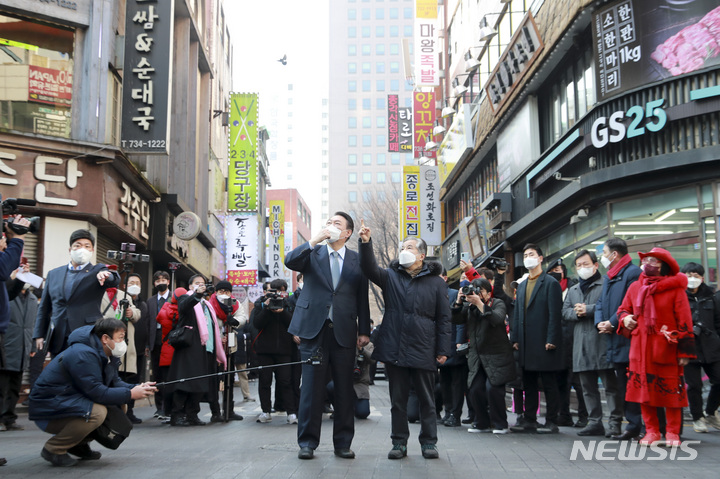 코로나19 자영업 피해 현장 찾은 윤석열 대선 후보